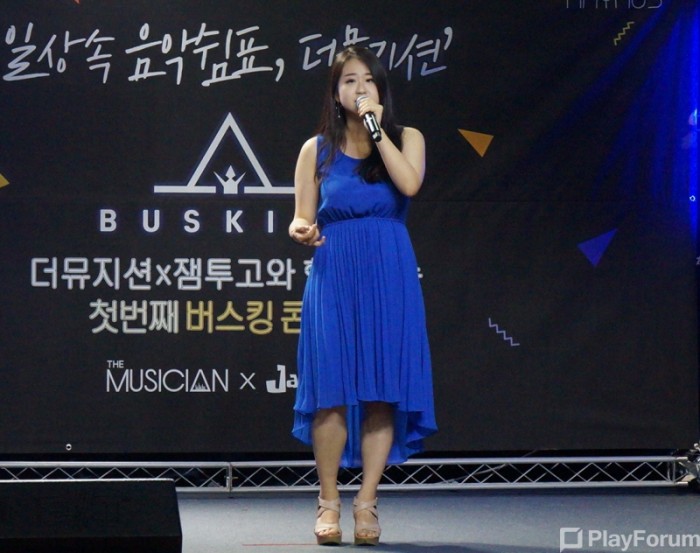 스마일게이트가 서비스하고 라이머스가 개발한 음악 연주앱 '더 뮤지션' 오프라인 이벤트인 버스커 미니콘서트가 19일 강남 잼투고에서 개최됐다.