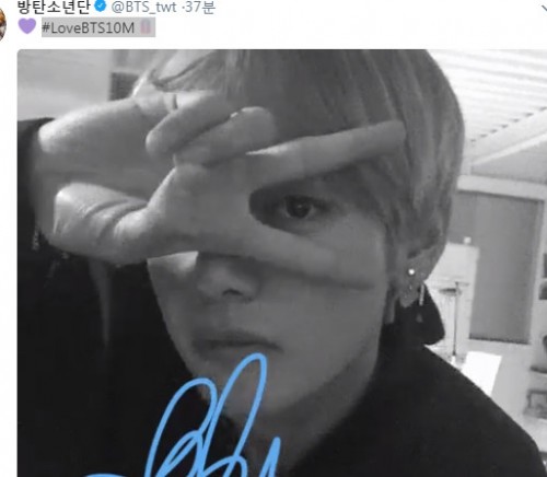 뷔, 슈가, 제이홉 등의 멤버들은 #LoveBTS10M라는 해시태그를 함께 달며 귀여운 '움짤'로 훈훈한 비주얼을 자랑했다.