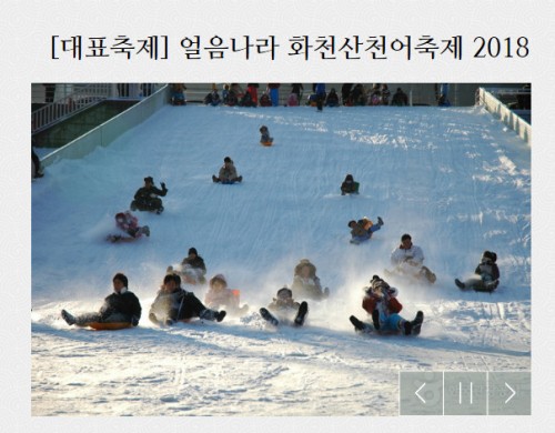 행사내용에는 산천어 체험, 눈과 얼음체험, 문화체험, 시가지 및 연계행사 등이 진행된다.