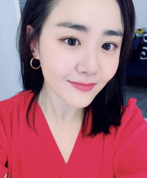 깨끗한 피부와 붉은 레드립과 원피스로 멋을 낸 그는 귀여운 미소로 동안 미모를 뽐냈다.