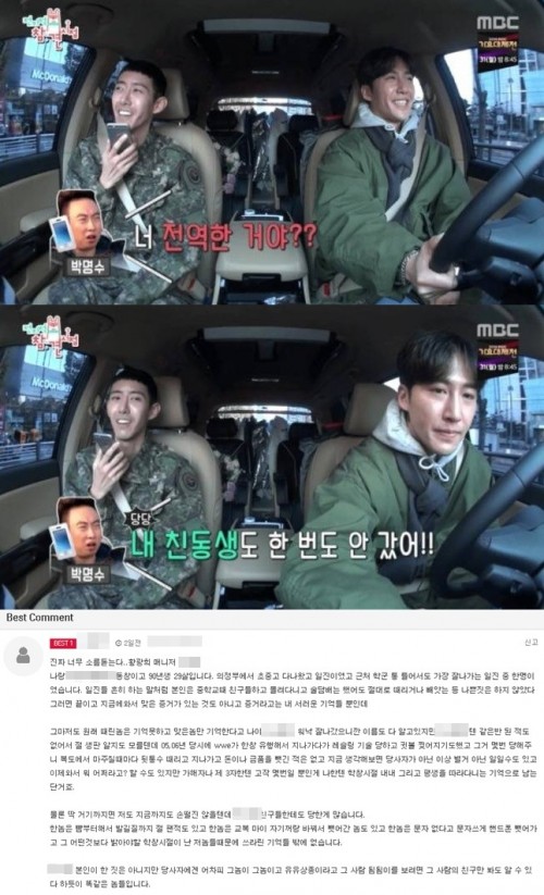 현재 논란이 된 내용은 게시물의 베스트 댓글로 올라와 있는 상태다.