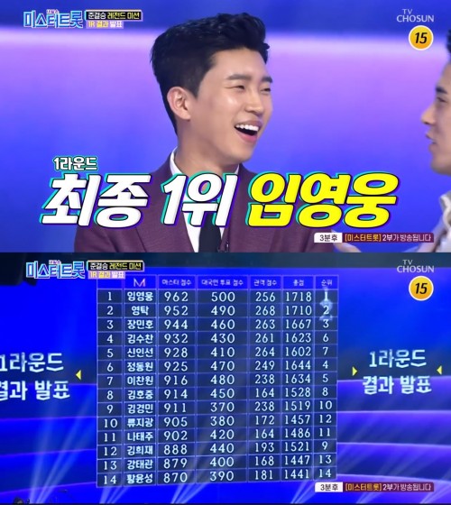 ‘미스터트롯’ 임영웅, 1R 최종 1위…2위 영탁·14위 황윤성