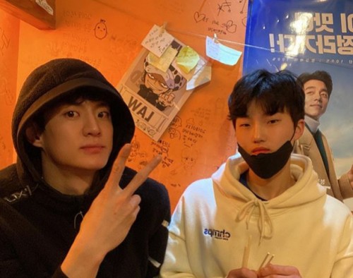사진 속에서 전지훈은 문수인과 브로맨스급 케미로 화기애애한 투샷을 인증했다.