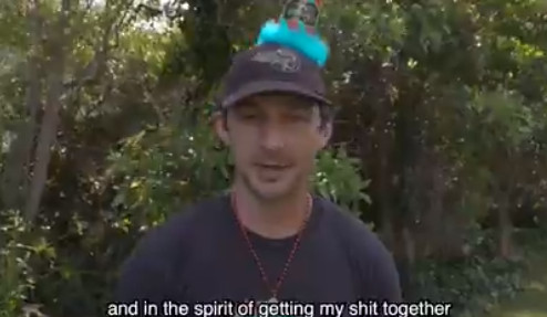 앞서 샤이아 라보프는 트위터를 통해 고깔모자를 쓰고서 찍은 영상 한 편을 공개했다.