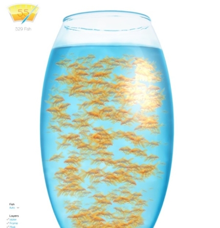 'fishbowl' 금붕어 테스트 방법은 해당 사이트(https://testdrive-archive.azurewebsites.net/performance/fishbowl/)에 접속해 좌측 중간 'fish' 라고 쓰인 곳의 바로 밑 숫자 '10' 을 'Auto'로 바꾸면 물고기의 양을 측정할 수 있다.