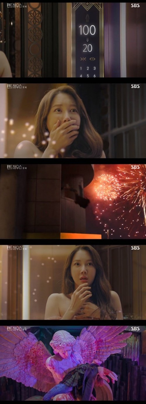 이날 심수련(이지아 분)은 드레스를 입고 엘리베이터에 올라 파티가 열리고 있는 곳으로 추정되는 20층으로 향했다.