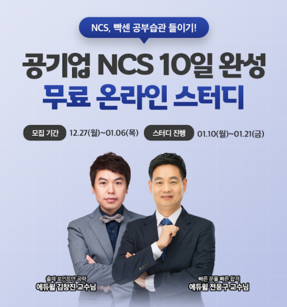 종합교육기업 에듀윌(대표 이중현)이 공기업 취업을 준비하는 취준생들을 위해 ‘NCS 10일 완성 무료 온라인 스터디’를 지원한다고 31일 밝혔다.