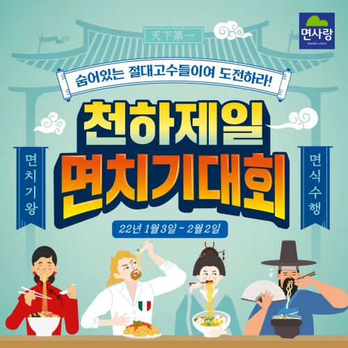 이와 함께 이번 면치기 대회 참여 독려를 위한 소문내기 이벤트도 1월 3일부터 16일까지 2주간 진행된다. 면사랑 공식 인스타그램의 면치기 대회 게시물을 필수 해시태그와 함께 리그램을 하면 추첨을 통해 30명에게 스타벅스 기프티콘을 증정한다.