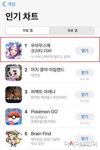 카카오게임즈의 모바일 신작 ‘우마무스메 프리티 더비’가 출시 당일 애플 앱스토어 인기 순위 1위, 매출 순위 2위를 기록했다.