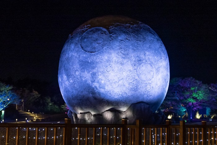 루나폴은 12만 평 규모로 실제 자연에서 즐기는 미디어아트다. 사람들이 달을 향해 소원을 빌었고 그 소원들이 무거워져서 제주도로 달이 떨어졌다는 콘셉트다. 순수하고 간절하게 빌었던 자신들의 소원과 마주하게 될 것이라는 이야기가 테마파크 내에 구현됐다.