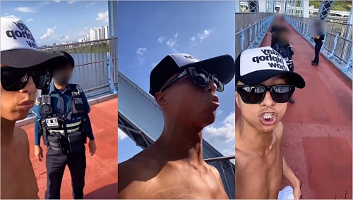 경찰: 뭐가 자유인가? (옷 벗고 태닝하는 거) 못하지. 여기는 사람들 다니지 않냐. 여기가 본인 집이냐?