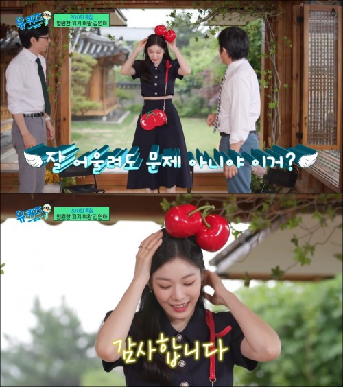 결국 김연아는 문제에 답을 맞히지 못하고, 자기백에서 랜덤 선물 '누가 체리불러썸?'을 뽑았다. 체리모양 가방과 머리띠였다. 선물을 받은 김연아는 그 자리에서 가방과 머리띠를 착용했다. 김연아는 "잘 어울려도 문제 아니야, 이거?"라며 머쓱해 하면서 "조카 가져다줘야겠다"라고 말했다.