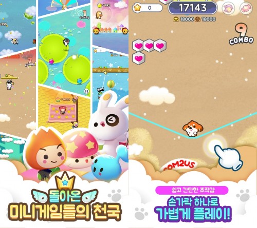 지난달 27일 글로벌 출시한 컴투스의 신작 '미니게임천국'은 국내 구글플레이 및 애플 앱스토어에서 인기 순위 1위를 달성했다.