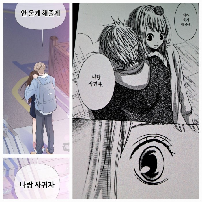 단순히 학교를 배경으로 펼쳐지는 로맨스 웹툰·만화가 워낙 다양해서 겹친 콘셉트의 유사성 혹은 '클리셰' 정도가 아니라, 아예 대사나 연출 자체가 겹치는 장면이 상당수 포착됐다.