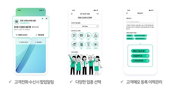 '손님전화'는 중소규모의 소상공인의 경우 고객응대 전화는 사장님의 휴대폰으로 착신전환해 대부분 사용하는 점에서 착안해 개발됐다. 단순히 리다이렉트로 전화가 연결되는 것이 아니라 고객전화가 수신되면 고객으로부터 온 전화임을 전화수신시 부터 앱에서 알려주기 때문에 신속하게 고객전화를 응대할 수 있다.