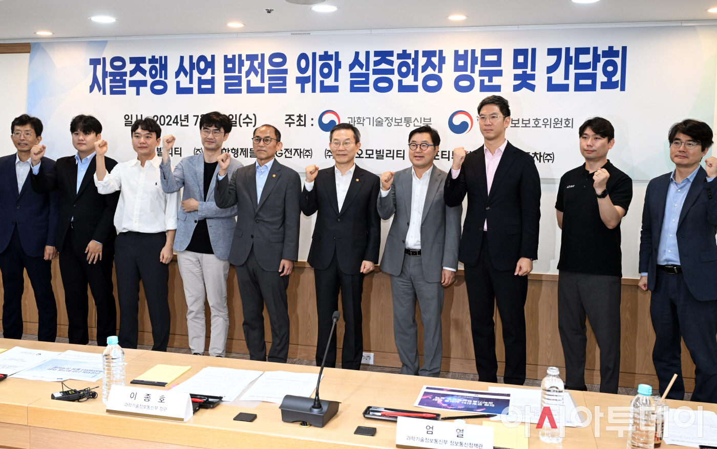 과학기술정보통신부와 개인정보보호위원회는 31일 서울 중구 청계광장 및 한국지능정보사회진흥원 서울사무소에서 이종호 과기정통부 장관과 고학수 개인정보위원장, 실증특례를 지정받은 우아한형제들, 뉴빌리티, 카카오모빌리티, 포티투닷 4개 기업과 자율주행을 활용하고 있는 현대차, LG전자 등 6개 기업 임원들이 참석한 가운데 자율주행 산업발전을 위한 실증현장 빙문 및 간담회를 개최했다.