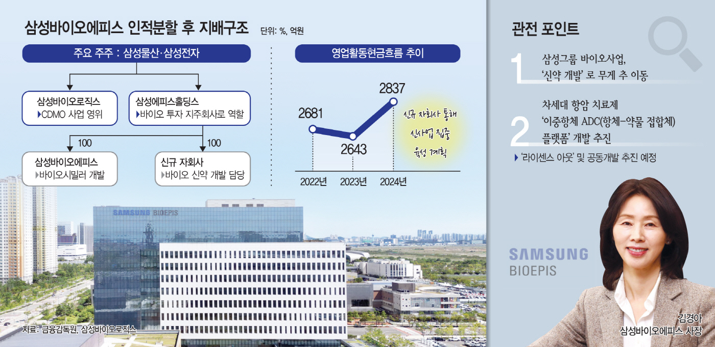 변화의 중심엔 삼성바이오에피스가 있다. 최근 금융당국의 인적분할 심사 관문을 거쳐 모회사 삼성바이오로직스의 품에서 벗어날 채비를 마쳤다. 오는 11월 투자지주사 역할을 하는 삼성에피스홀딩스(가칭)가 설립돼 시장에 상장되고, 그 산하에 신규 자회사가 신설돼 '이중항체 ADC(항체-약물 접합체) 플랫폼'을 중심으로 본격적인 신약 개발을 추진할 계획이다.