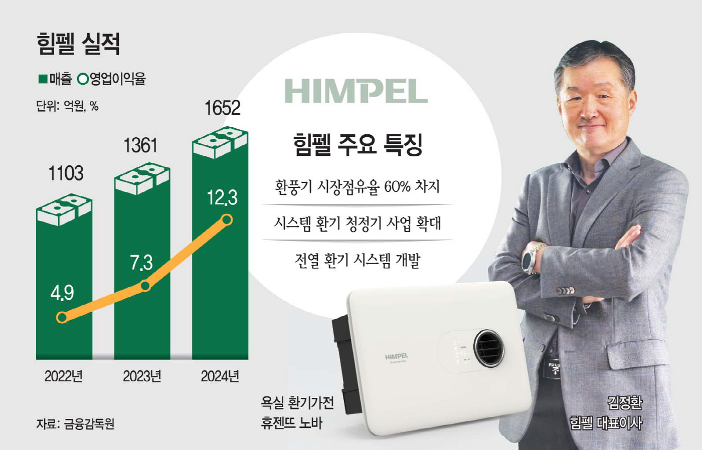 힘펠 관계자는 "건강한 주거 생활에 관심이 커지면서 실용적이면서도 집 안을 쾌적하게 유지할 수 있는 생활가전이 주목받고 있다"며 "욕실 환기뿐 아니라 주방·거실 등 실내 오염된 공기를 배출하는 휴벤 등을 통해 '토털 환기 솔루션' 업체로 진화하겠다"고 말했다.