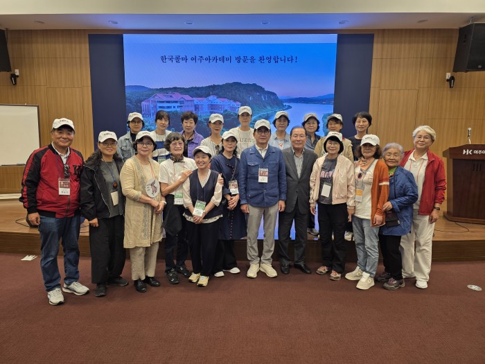 고려대 월례강좌가 주최한 추계 문화탐방이 지난 25일달 여주시 영릉(세종대왕릉)과 신륵사 일대에서 회원 120명이 참가한 가운데 열렸다. 교우들이 한국콜마아카데미에서 기념촬영을 하고 있다. / 사진=고려대 월례강좌