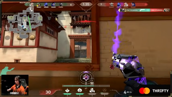 전반은 6:6 동점으로 마무리됐다. 후반전 피스톨 라운드를 DRX가 승리하며 앞서갔지만 곧바로 프나틱이 크로니클의 놀라운 샷과 함께 절약왕으로 흐름을 다시 잡았다.