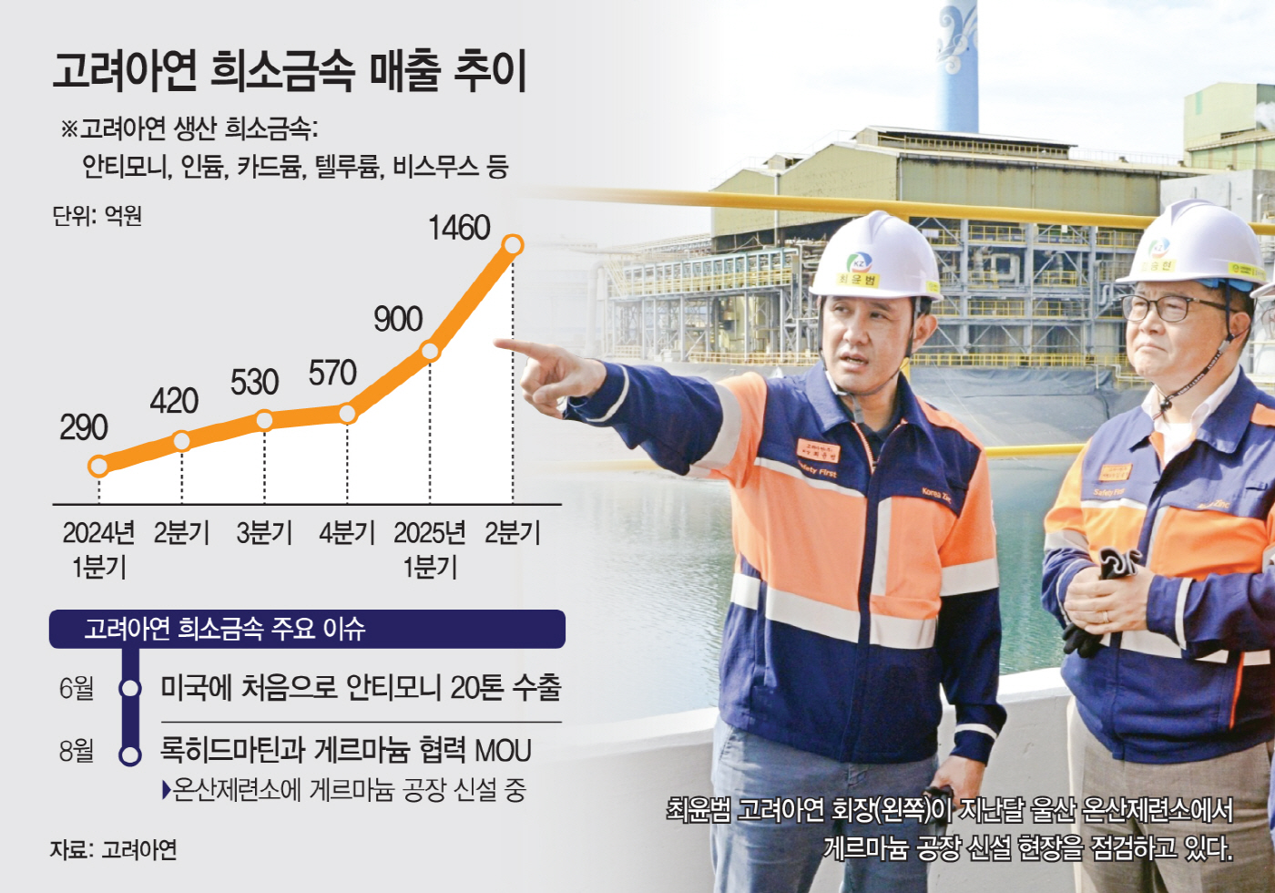 고려아연은 아연·연·구리 등 기초금속 사업을 중심으로 삼고 있지만, 최윤범 고려아연 회장이 안티모니·비스무트·인듐·게르마늄 같은 전략광물로 포르폴리오를 다양화했다.