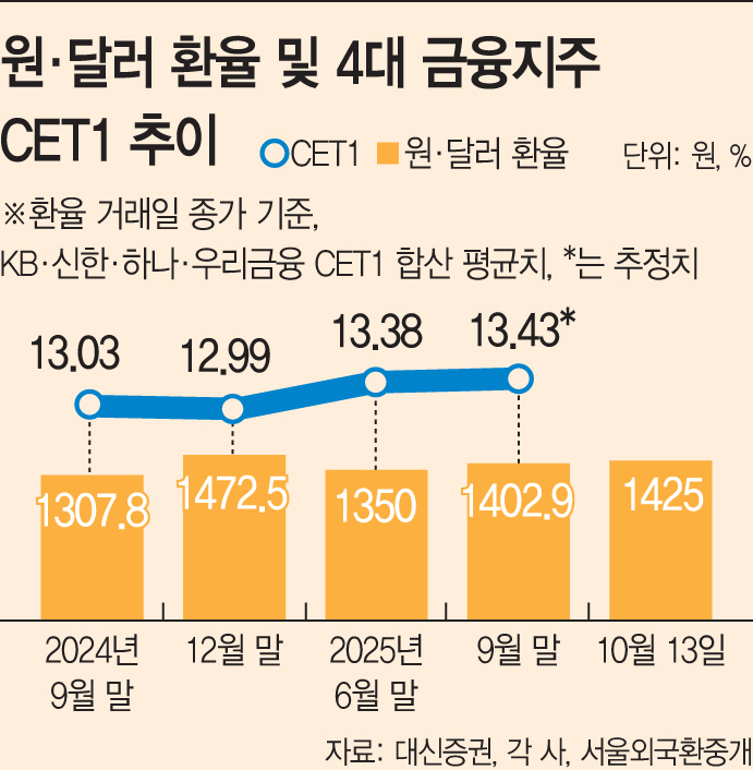 달러 1420원 돌파로 CET1 하락 경계