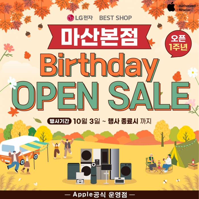 매장에서는 오픈 1주년을 맞아 경남 웨딩박람회 행사를 비롯해 군인가족 위한 초청 행사, 김치냉장고 세일, 전시제품 및 이월상품 특별가 판매, 으뜸효율가전 환급, iPhone 17 혜택 제공 등 다채로운 프로모션과 이벤트를 진행한다.