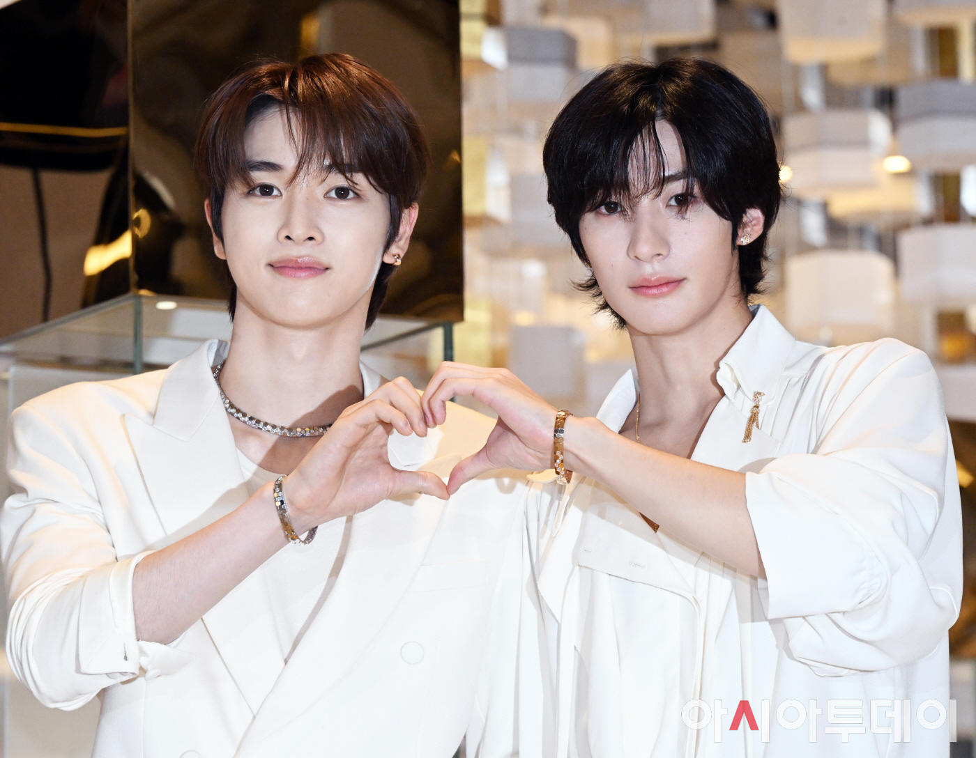 [포토]라이즈 성찬·앤톤이 만든 손하트...‘비 드 쇼메’ 팝업 스토어 오픈