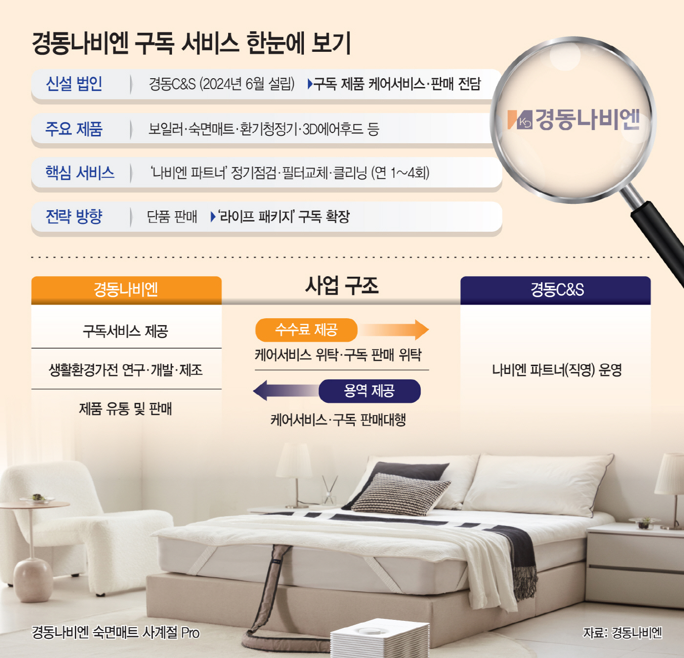 15일 업계에 따르면 경동나비엔은 지난 6월 100% 현금 출자 방식으로 자회사 경동C&S를 설립했다. 모회사가 연구개발(R&D)과 제조에 집중하는 동안, 경동C&S는 구독 제품의 케어 서비스와 판매 대행을 전담한다. 구독 사업 전반의 효율성을 높이고 고객 접점을 강화하기 위한 조치로 풀이된다.