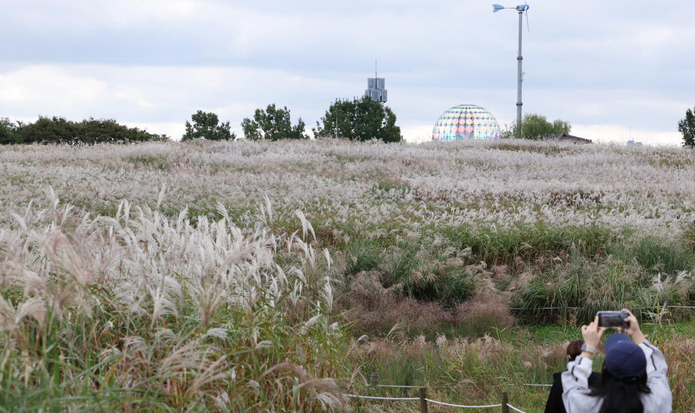 서울억새축제가 열리고 있는 19일 하늘공원을 찾은 관람객들이 만개한 억새밭 사이로 가을 정취를 만끽하고 있다. 한편 기상청은 20일 북쪽의 찬 공기가 유입되면서 기온이 크게 낮아지고 일부 지역에 서리와 눈이 내리는 등 올가을 최저 기온을 예보했다. /연합