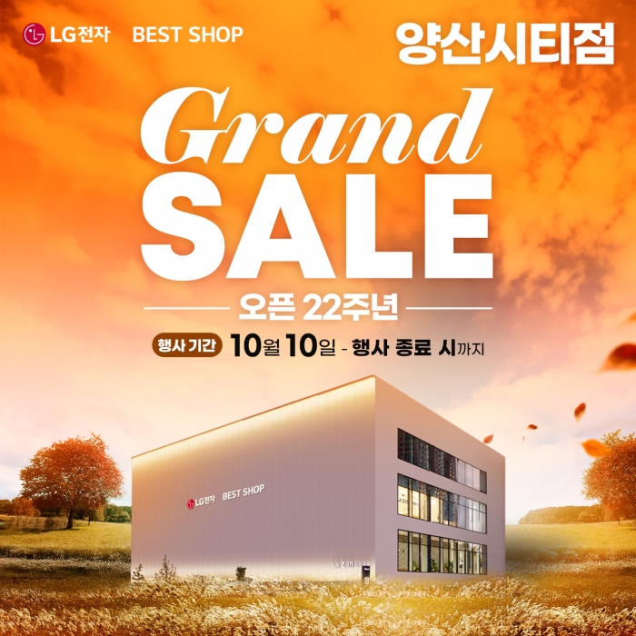 프리미엄 가전매장 LG전자 베스트샵 양산시티점은 오픈 22년을 맞아 그랜드 세일 행사를 지난 10일부터 행사 종료 시까지 진행한다고 22일 밝혔다.