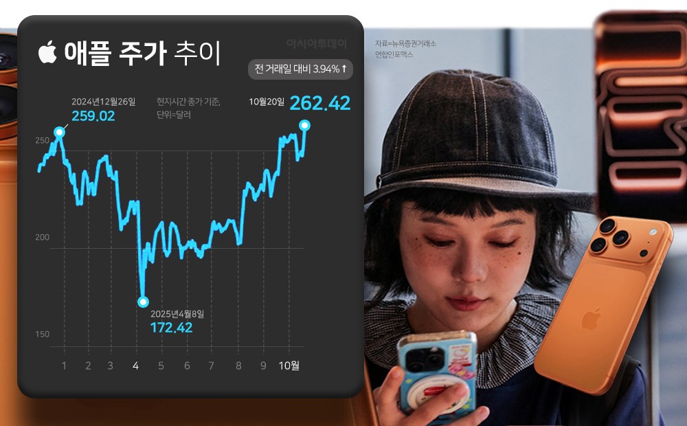 애플 주가는 지난해 12월 이후 처음으로 기록적인 마감에 근접했다. 최근까지는 미중 무역관세 우려와 인공지능(AI) 제품 경쟁력에 대한 회의론으로 주가가 주춤했지만, 관련 불확실성이 해소되면서 상승세를 되찾고 있다.