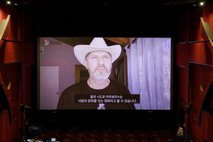 마크 매리엇 감독은 인사말을 통해 "도쿄 카우보이는 올해 '인천 영화 주간 2025'의 주제인 '떠나다, 머물다, 마주치다'는 깊이 맞닿아 있다"며 "단순히 국경을 넘는 여행이 아니라 마음속 새로운 길을 찾아가는 이야기로, 익숙한 것을 뒤로하고 뜻밖의 연결을 찾는 여정이라고 할 수 있다"고 설명했다.