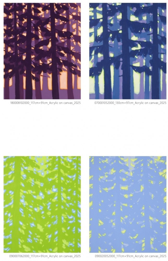 반복적으로 등장하는 모티프 ‘숲 사이의 빛’은 색채의 미세한 변주를 통해 감정의 스펙트럼을 확장하며, 시간 속에서 기억이 어떻게 변형되고 전환되는지를 상징한다.