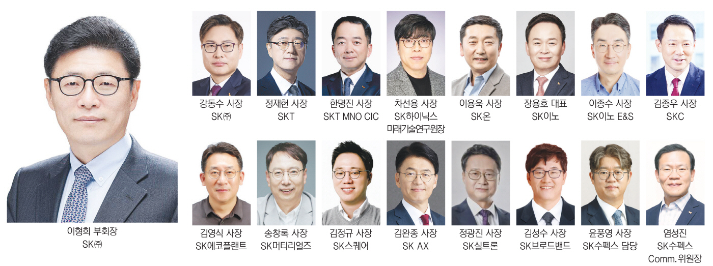 16명 규모의 사장단 인사 면면을 보면 1962년생부터 1976년생까지 다양하게 포진돼 있어 관록을 바탕으로 회사를 안정화하면서도 변화를 앞당길 수 있는 인물에 초점을 맞췄다. 4년 만에 부회장 승진이 진행돼 이형희 커뮤니케이션위원장이 SK㈜ 부회장단에서 활동하게 됐으며, 회사의 포트폴리오를 면밀하게 들여다본 강동수 SK㈜ PM 부문장이 사장으로 승진했다. 해킹사태로 고초를 겪은 SK텔레콤은 부장판사 출신의 정재헌 최고거버넌스책임자(CGO)를 신임 사장으로 선임해 회사 거버넌스 체계를 고도화하겠다는 의지를 강조했다.