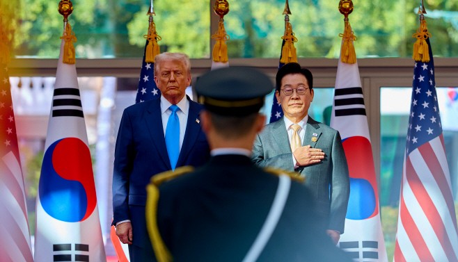 대통령실은 이재명 대통령이 29일 경북 경주박물관에서 열린 도널드 트럼프 미국 대통령 공식 환영행사에 참석한 모습을 30일 SNS에 공개했다. /이재명 대통령 SNS
