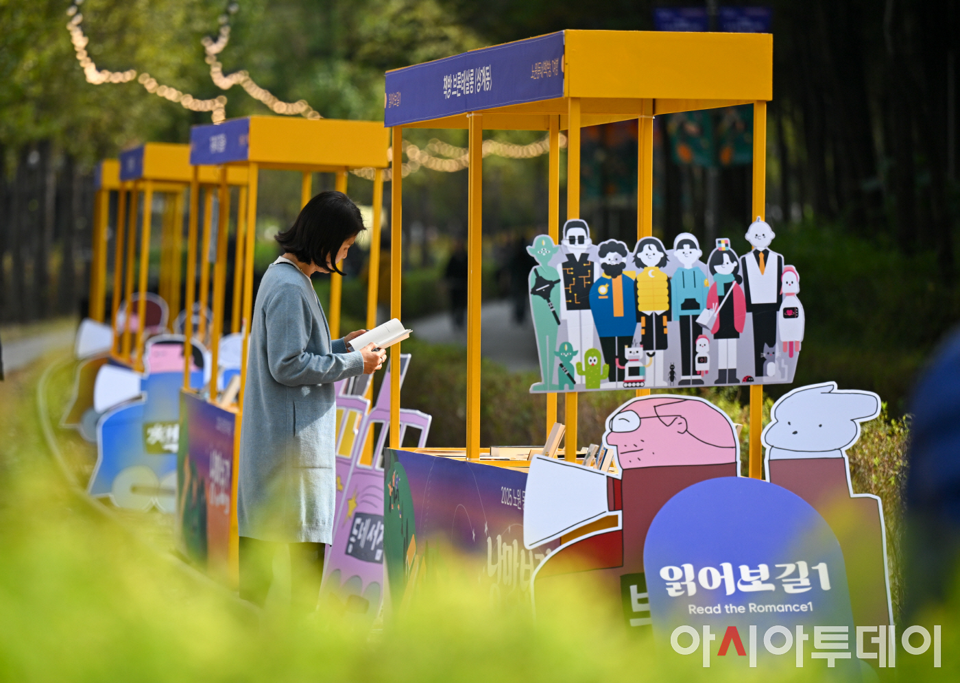 31일 서울 노원구 경춘선 숲길 일대에서 열린 '노원 몽:땅 야외도서관 : 낭만보장(場)'을 찾은 시민들이 독서를 즐기고 있다. 노원구는 경춘선 숲길 일대에서 시민들이 일상에 특별한 가을 낭만을 즐길 수 있도록 이번 행사를 마련했다. 철길을 따라 가을 정취를 느끼며 불빛을 바라보는 불멍존, 숲길에서 돗자리를 펼치고 앉아 책을 읽는 북크닉존, 작가와의 만남과 공연, 플리마켓과 푸드트럭이 함께하는 북쉼터와 취식 공간 등 다양한 즐길 거리와 체험 프로그램을 오는 2일까지 진행한다. /정재훈 기자