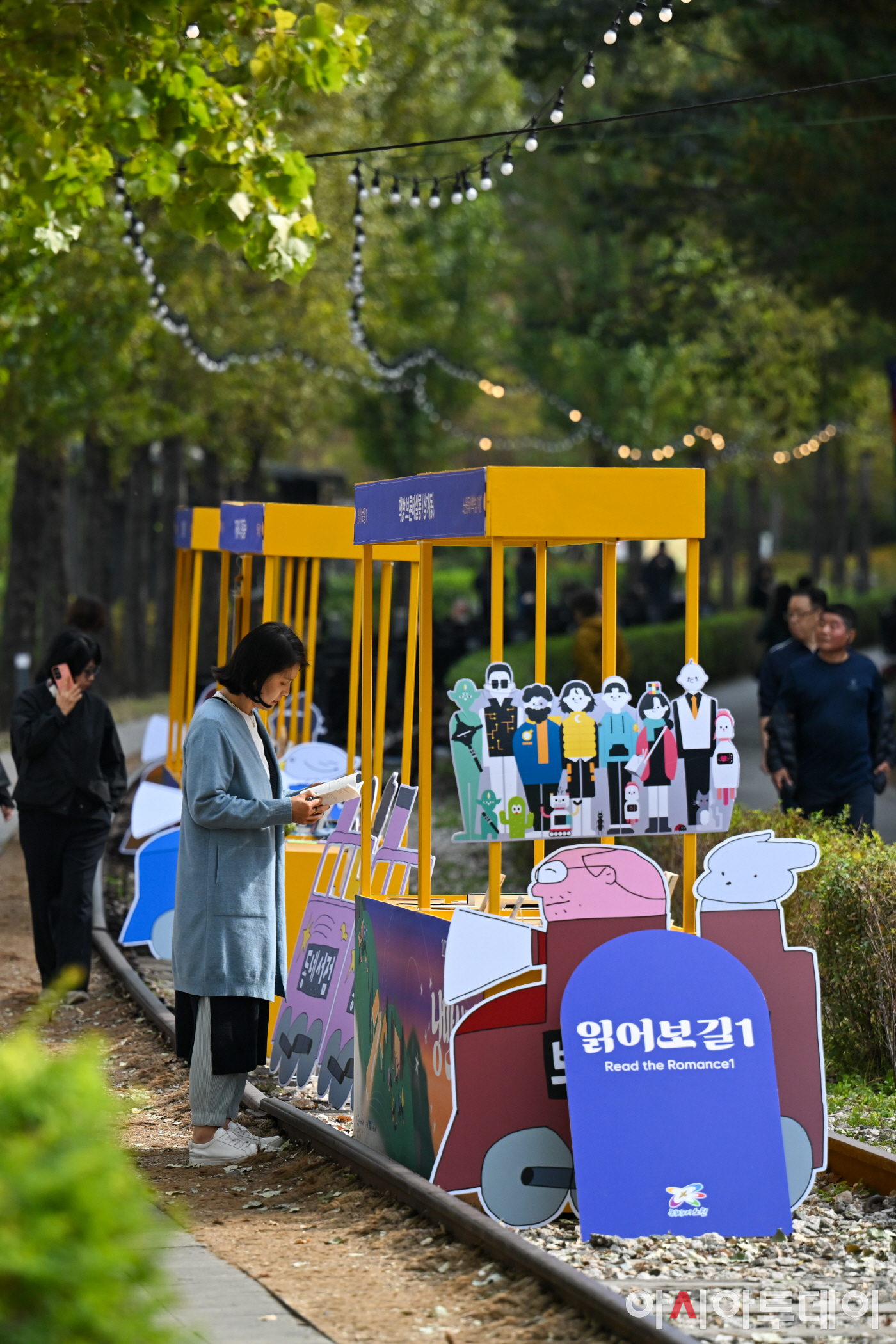 31일 서울 노원구 경춘선 숲길 일대에서 열린 '노원 몽:땅 야외도서관 : 낭만보장(場)'을 찾은 시민들이 독서를 즐기고 있다. 노원구는 경춘선 숲길 일대에서 시민들이 일상에 특별한 가을 낭만을 즐길 수 있도록 이번 행사를 마련했다. 철길을 따라 가을 정취를 느끼며 불빛을 바라보는 불멍존, 숲길에서 돗자리를 펼치고 앉아 책을 읽는 북크닉존, 작가와의 만남과 공연, 플리마켓과 푸드트럭이 함께하는 북쉼터와 취식 공간 등 다양한 즐길 거리와 체험 프로그램을 오는 2일까지 진행한다. /정재훈 기자