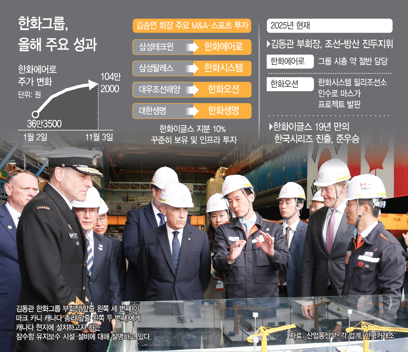 올해 한화그룹을 전성기로 이끈 계열사는 한화에어로·한화오션·한화시스템 등이 대표적이다. 한화오션과 한화시스템은 미국 필리조선소를 함께 인수하면서 한화그룹이 미국의 조선 재건을 돕는 주력 파트너로 발돋움하는 역할을 했다.