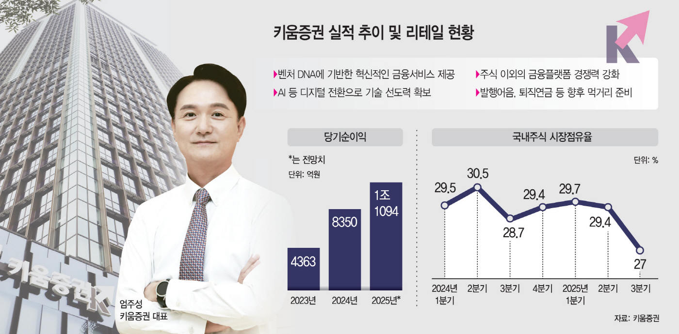 4일 금융투자업계에 따르면 키움증권의 올 3분기 개인투자자 국내주식 일평균 약정금액 기준 시장점유율은 평균 27.0%로 집계됐다. 이는 전 분기(29.4%) 대비 2.4%포인트 떨어진 수준이자, 전년 동기(28.7%)와 비교해도 1.7%포인트 낮다.
