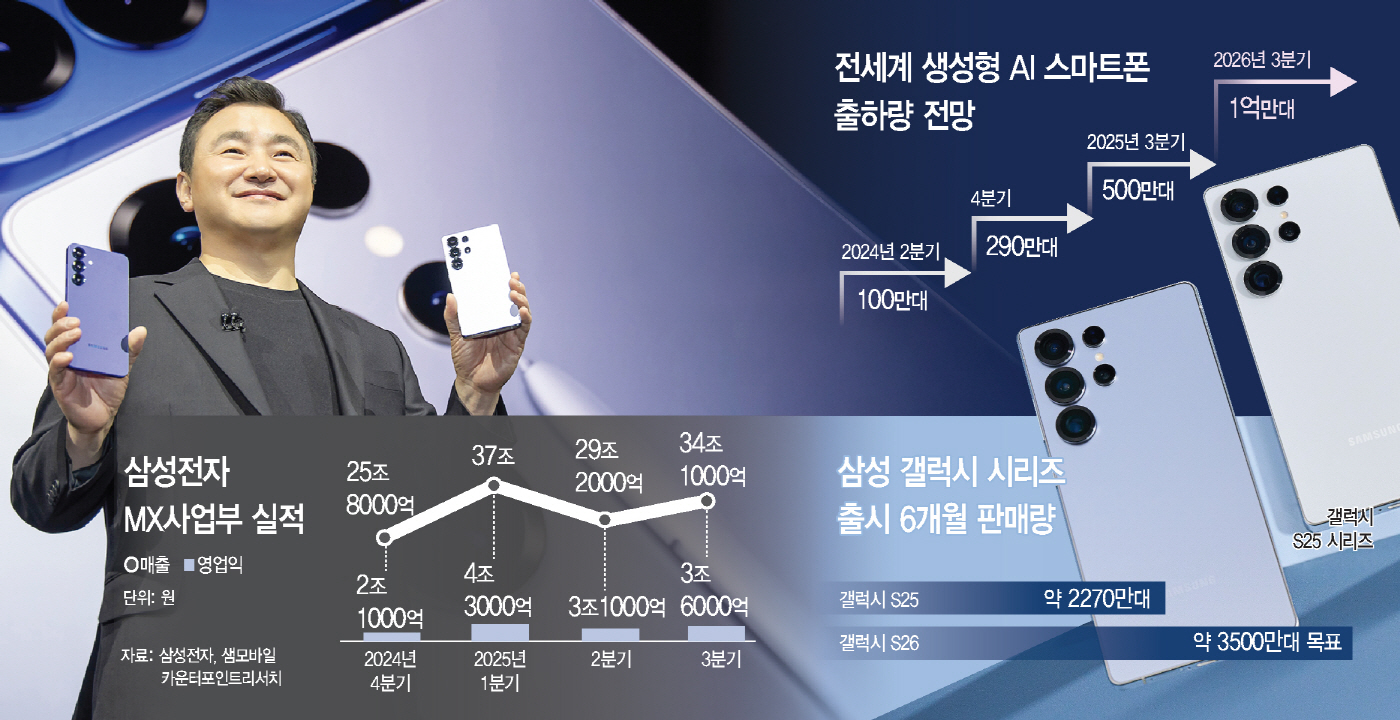 MX(모바일경험)사업부는 내년 상반기 '갤럭시 S26' 시리즈의 판매 확대를 통해 실적 호조를 이어가겠다는 목표다. 올해 플래그십과 폴더블 스마트폰 판매가 호조를 보이며 MX사업부의 매출과 영업이익이 모두 개선됐다. 이 같은 흐름 속에서 MX사업부는 S26 시리즈의 상반기 판매 목표를 약 3500만대로 설정한 것으로 전해졌다.