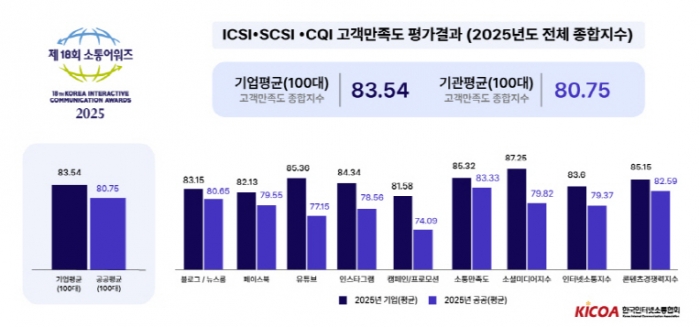 | 2025년도 디지털소통효과 측정 종합지수(기업/공공기관 채널별 평균) /제공=한국인터넷소통협회 |