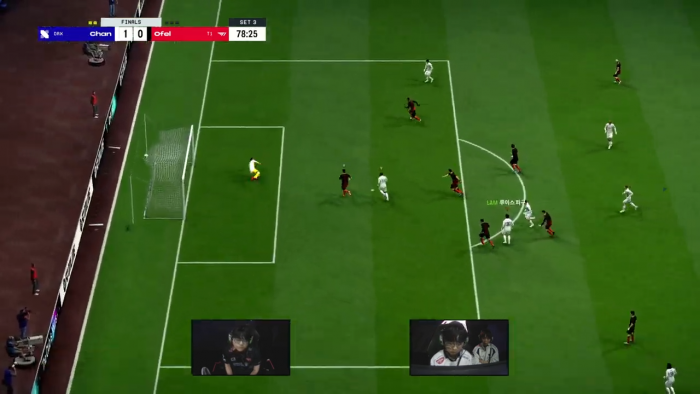 치열한 공방전 속에서 후반 77분 찬이 균형을 깼다. 박스 안에서 오펠을 능수능란하게 농락하는 완벽한 개인기로 역전골을 성공시켰다. 결국 찬이 스코어 2:1로 1세트를 가져갔다.