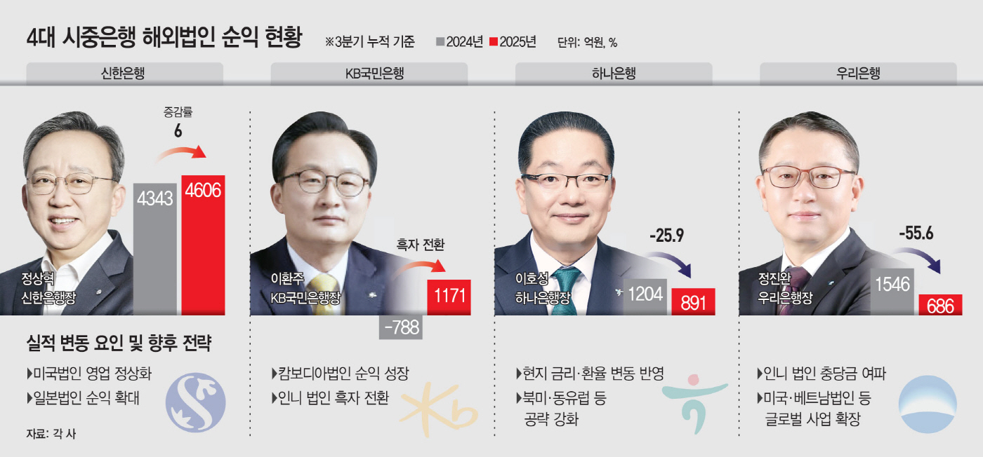 상반기 환율 변동과 충당금 증가로 주춤했던 하나은행과 우리은행도 반등을 노린다. 적극적인 리스크 관리와 영업 전략 재편으로 손실을 줄이는 한편, 북미·베트남 등 핵심 시장 공략을 강화하며 순익 확대에 드라이브를 걸고 있다.