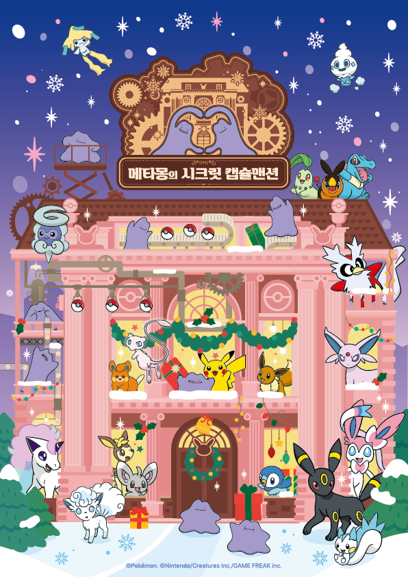 ‘메타몽의 시크릿 캡슐맨션’은 고급스러운 맨션의 비밀 공간에서 사랑하는 이들을 위해 선물을 준비하는 공장 콘셉트로 꾸며졌으며, 따뜻하고 포근한 겨울을 보내는 포켓몬들을 만나볼 수 있다.