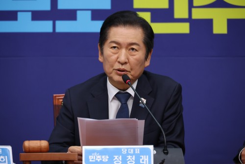 | 더불어민주당 정청래 대표가 24일 서울 여의도 국회에서 열린 최고위원회의에서 발언하고 있다. /연합뉴스 |