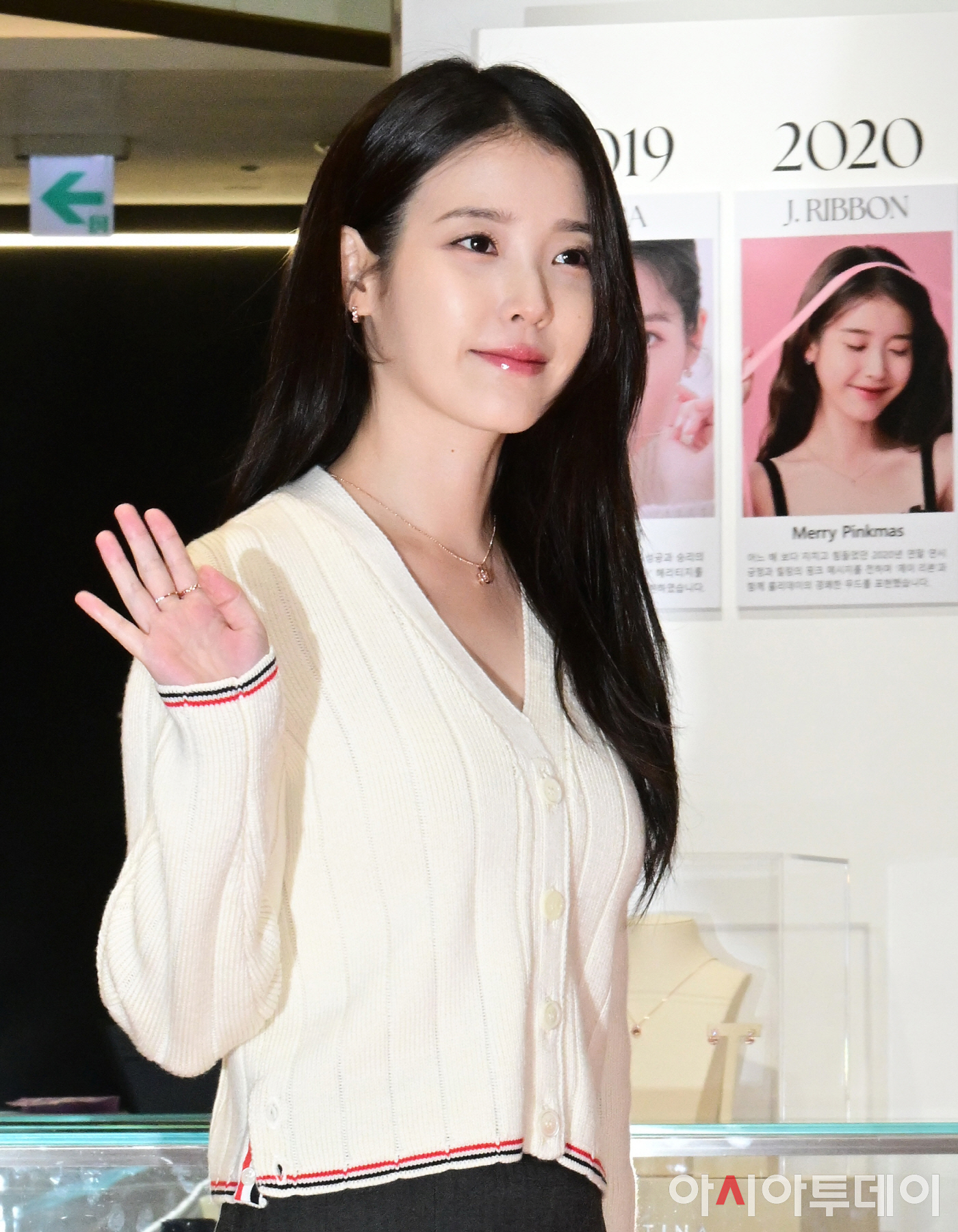 [포토]아이유, 제이에스티나 7년 동행 기념 팝업 참석… 연말 여신룩 완성