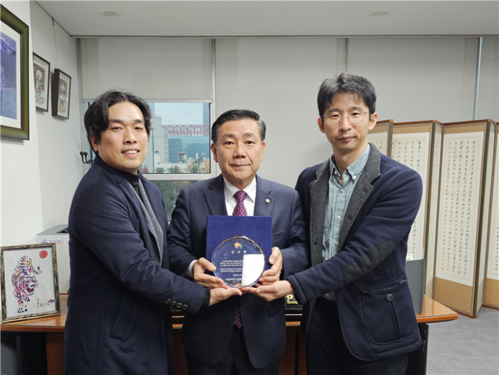 | 국회 보건복지위원회 소속 백종헌 의원(가운데)이 보건복지부 공무원노동조합으로부터 감사패를 수상했다. / 사진=백종헌의원실 |