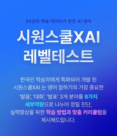 시원스쿨 관계자는 “레벨테스트와 시원패스XAI는 AI 기술과 20년 교육 노하우가 결합된 서비스”라며 “정확한 진단과 체계적 학습을 통해 한국인 학습자에게 가장 효율적인 영어 학습 환경을 제공하겠다”고 말했다.