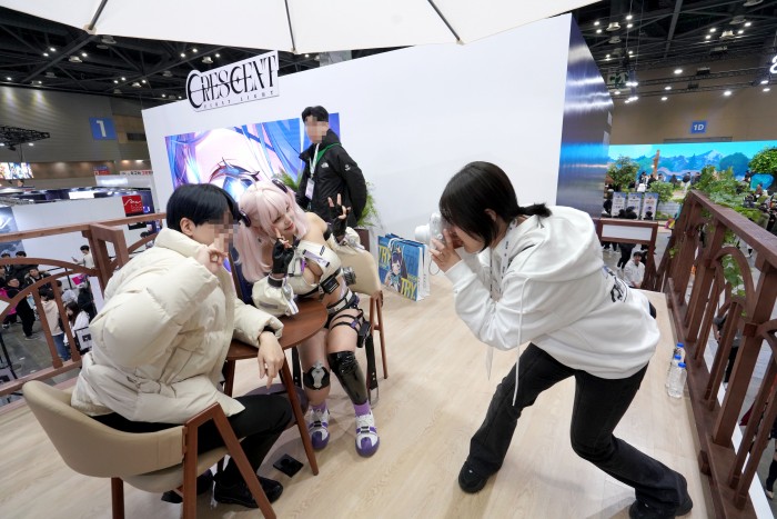 '크레센트' 부스 내에서는 게임의 매력적인 캐릭터들로 완벽하게 변신한 코스플레이어들이 관람객을 맞이했다.